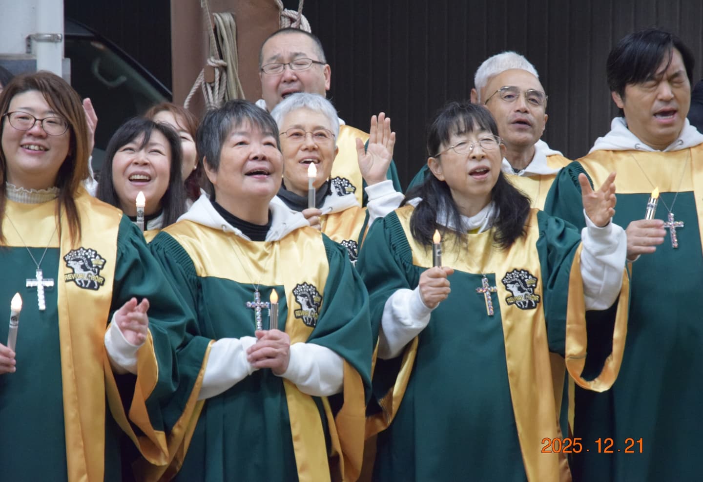 今年のテーマは 「神の愛」 プレヤーハウスでコンサートを行いました。 『神はあなたを愛しておられる』というテーマでメッセージをしていただきました。感謝します 多くの方々にお越しいただきありがとうございました。 陰の支えで。 裏方でたくさんの方が。 音響、照明、映像、設営、運搬、子守り、記録、アッシャー、装飾、受付、クワイヤー、…等その他たくさんのご奉仕が。 普段から操作練習や準備等をしてくださり、たくさんの方のご奉仕を感謝します。 キャロリング。 12月に入り毎週日曜日に円頓寺商店街で賛美を行いました。見にきてくださった方、ありがとうございます♪