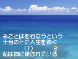 「私は神様に愛されている」という全く自分の考えとも信念ともなりきったものが心の中にあるということです。ただ神様がそう言われているという理由だけでです。これを土台として、この上に人生を築くのです。