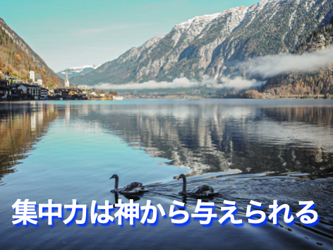 私たちにも、このような最高のパフォーマンスを発揮するための集中力が神様から与えられています。ですから、何者にも邪魔されないで、ただ目の前のことだけに集中して取り組むことが出来る時に、私たちは多くのことを成し遂げて行くことが出来ます。仕事や勉強でも、毎日コツコツと目の前のやるべきことを成し遂げていくことができるので、それが後になって、「いつの間にかこんなにも出来ていた」と気付かされることになります。