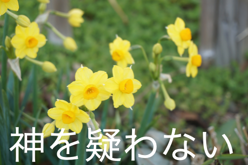 私たちが神を疑わないためにはどうすればよいでしょうか。 私は最近、やるべきことが進まないので焦って平安をなくすことがありました。その時主が、平安がないのは神様を疑っていることだと示してくださいました。悔い改めて祈ると、「神にとって不可能なことは何もありません。(ルカ1:37)」というみことばが与えられました。私はどんなことでもできるお方に信頼しないで、自分には能力や体力がないとか、時間が足りないとか言って、自分の考えにとらわれて、神様のみことばを聞いていなかったことに気づかされました。みことばを思い巡らしていると、心が守られて成し遂げることができました。