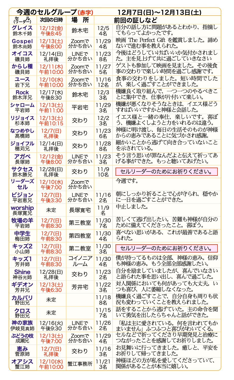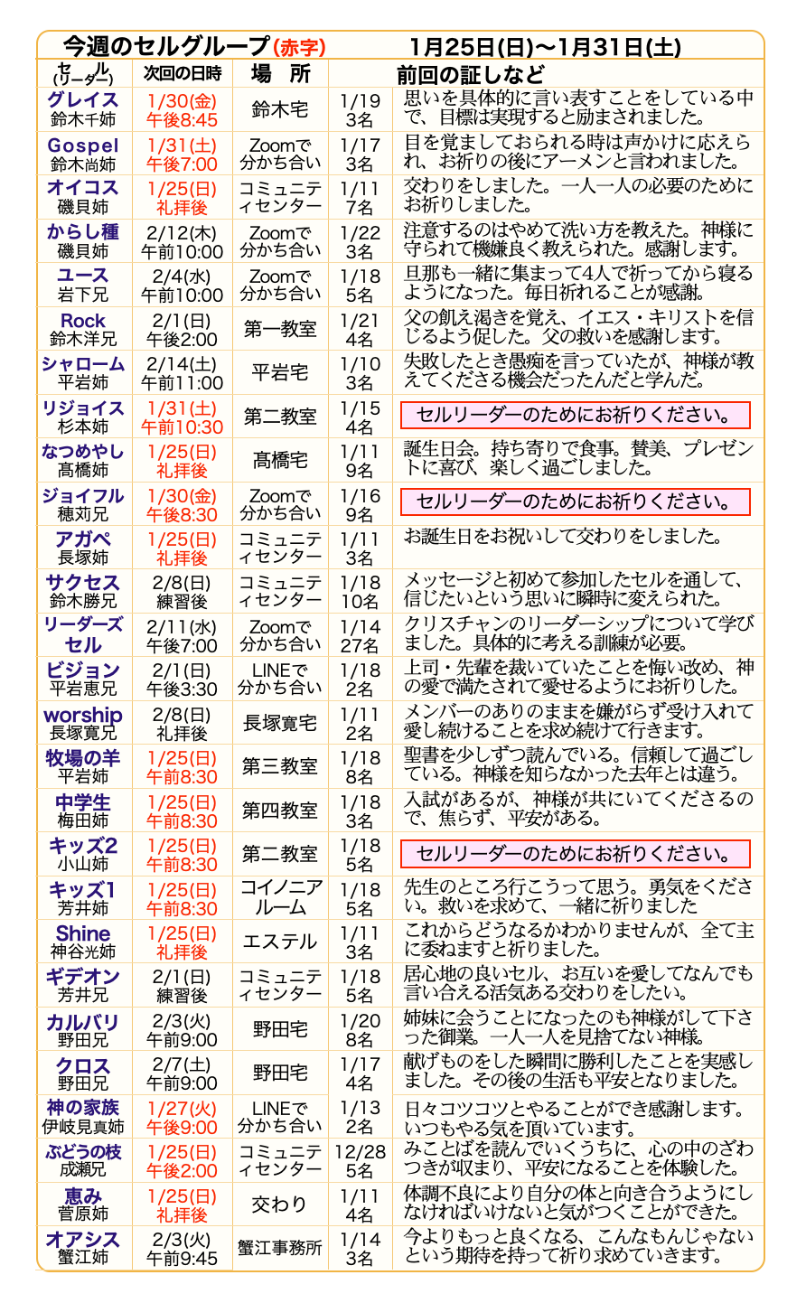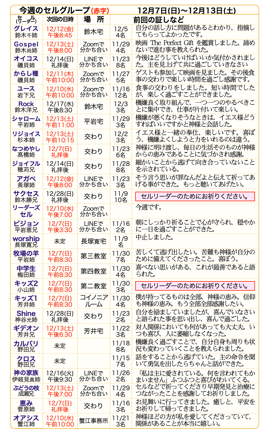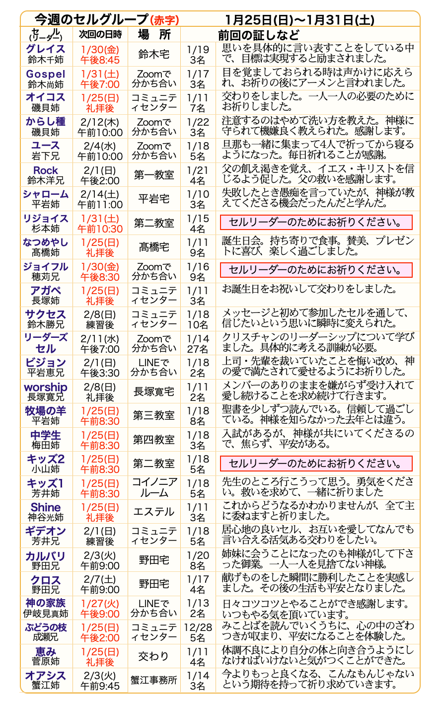 第2水曜日 リーダーズセル 午後7:00~8:30