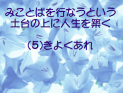 心の中にある、人生の土台は、できない者でありながらも、みことばを行ないたいという、強い思いのあることです。神様のことばが、根底に明確にあり、それが自分の考えとなっていることです。つまり、あらゆることをきっかけに、みことばを行なおうとする行動に出ることになります。