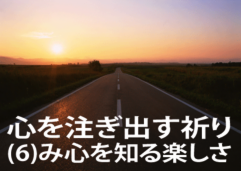 心注ぎ出す祈りは、神様との会話は、このようにしていけば良いのだ、ということを確認させてくれます。あなたは、それを心の中に持ち込んで、(神様との会話によって)「考えるとはこういうことなのだ」「思うとはこういうことなのだ」「感じるとはこういうことなのだ」と確認できるのです。みこころを知れば知るほど、楽しくなります。