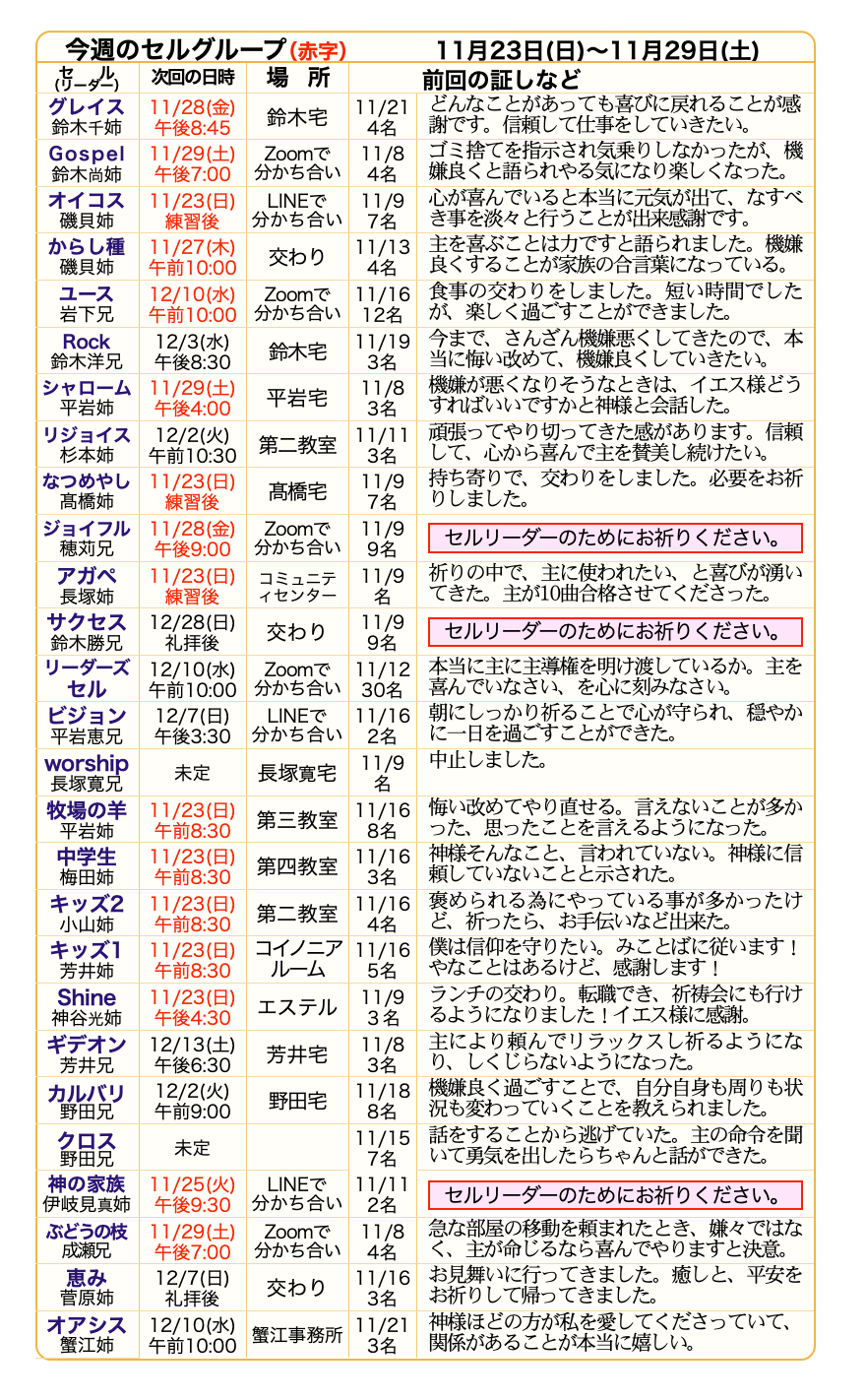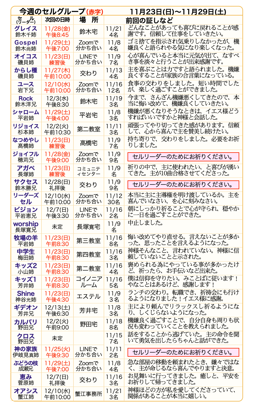 第2水曜日 リーダーズセル 午後7:00~8:30